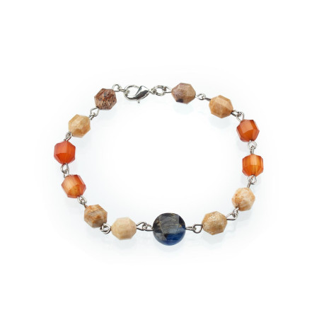 Браслет з сердоліком, кіанітом і коралом