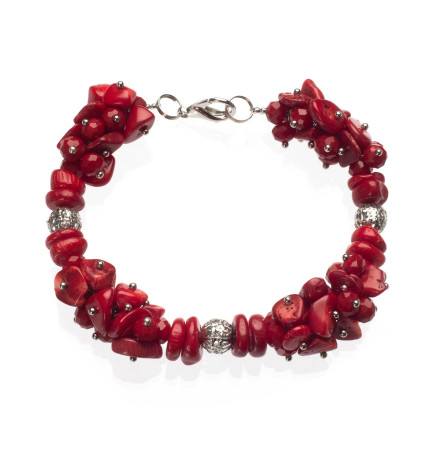 Браслет з сердоліком, кіанітом і коралом