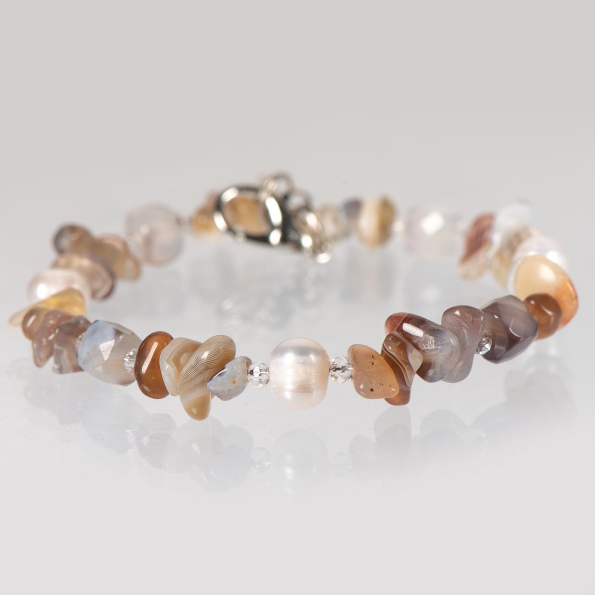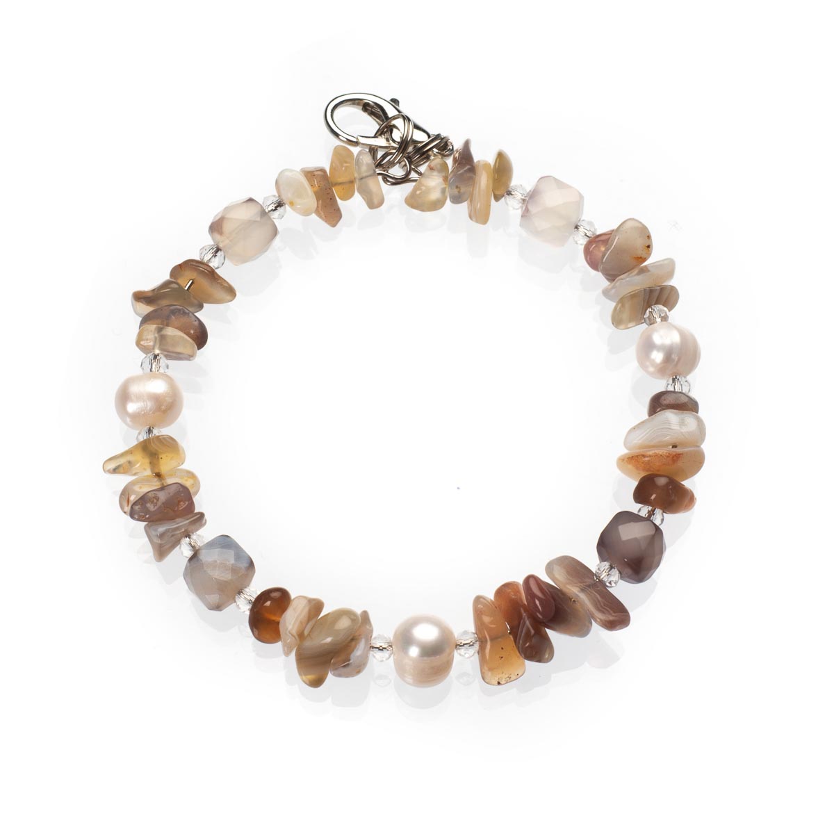 Браслет з агатом Ботсвана та перлами