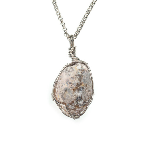 Изысканная капля природы – подвеска из натурального агата в серых оттенках. Камень имеет естественный рисунок с плавными волнистыми линиями, создающими эффект глубины и природной гармонии. Простой металлический крепеж подчеркивает красоту камня, оставляя акцент на его естественной форме и блеске.