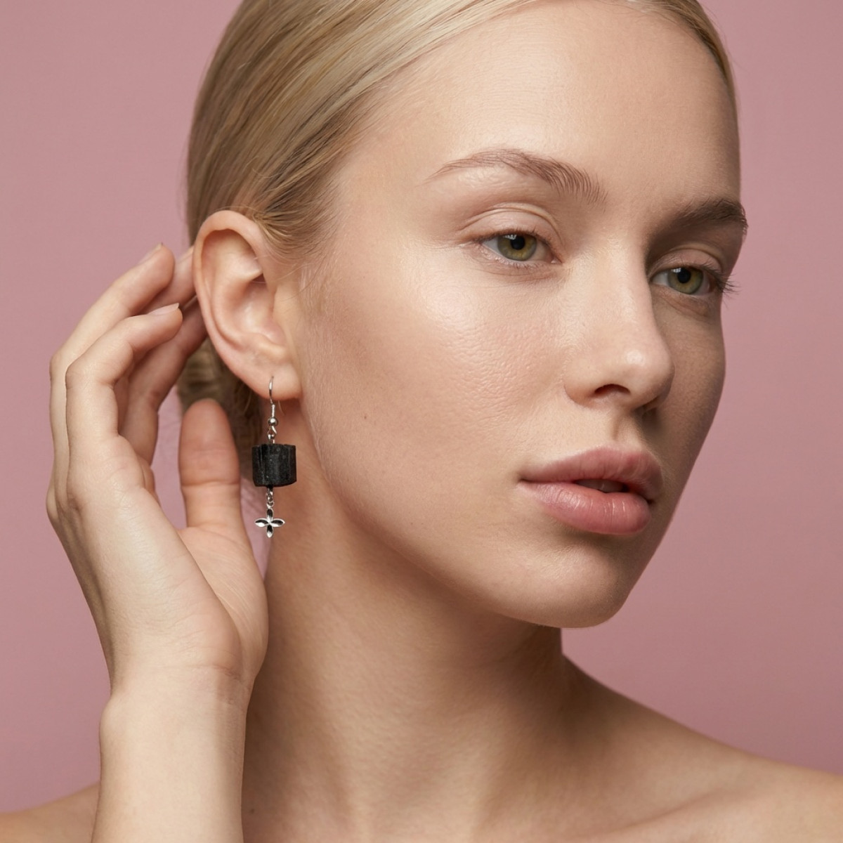 Серьги с натуральным турмалином