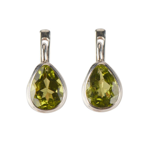 Серьги с натуральным хризолитом из серебра