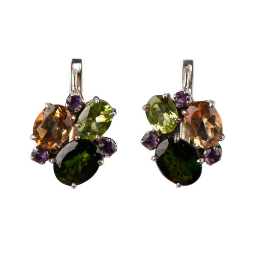 Сережки з натуральним хромдіопсидом зі срібла